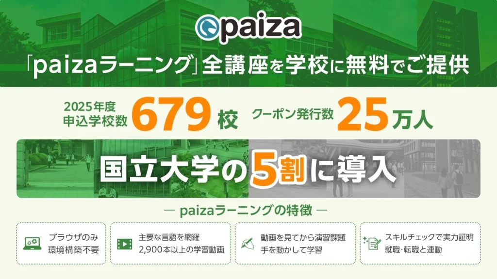 国立大学の半数以上が導入!「paizaラーニング 学校フリーパス」でプログラミング学習の扉を開こう!