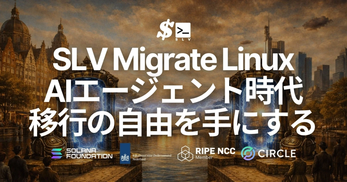 SLVは、Solana開発の全ライフサイクルをAIエージェントと協力しながらサポートしてくれるオープンソースツールです。Solana RPCやバリデータの立ち上げから運用、ノーダウンタイムでの移行まで、幅広い機能を提供しています。ERPC Global Storageと連携した定期的なバックアップの自動化や、今回の「SLV Migrate Linux」によるワンコマンドでの環境移行まで、Solana開発に必要な運用基盤をまるごと提供してくれるんですよ。